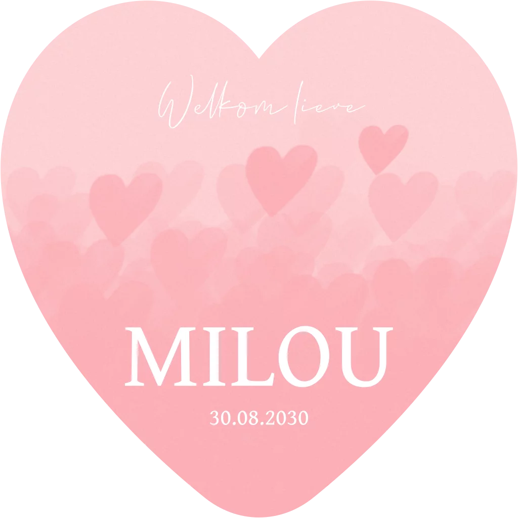 Een lief en uniek geboortekaartje in de vorm van een hartje voor een meisje. Dit bijzondere kaartje valt direct op door zijn unieke hartjes vorm.De achtergrond van het geboortekaartje is versierd met lieve schattige roze hartjes, wat het kaartje nog speelser en schattiger maakt.