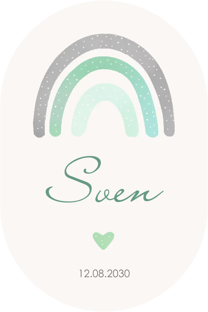 Met mooie lieve mint groen en grijze kleuren en het mooie minimalistische ontwerp is de regenboog het perfecte symbool van geluk en vreugde. Het geeft het geboortekaartje een vrolijke uitstraling die bij de blijdschap van deze speciale gelegenheid past.