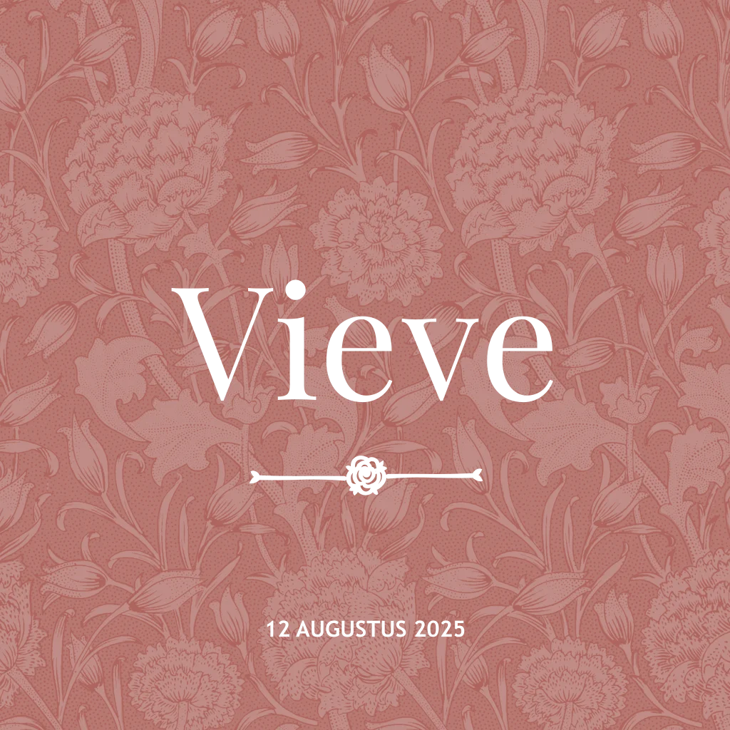 Chique geboortekaartje met een botanisch patroon van vintage bloemen in terracotta en oudroze kleuren en groot de naam in rosé goudfolie. Een mooi botanisch geboortekaartje voor je pasgeboren meisje. Alle retro kleuren van de bloemen en achtergrond zijn gemakkelijk naar smaak aan te passen.