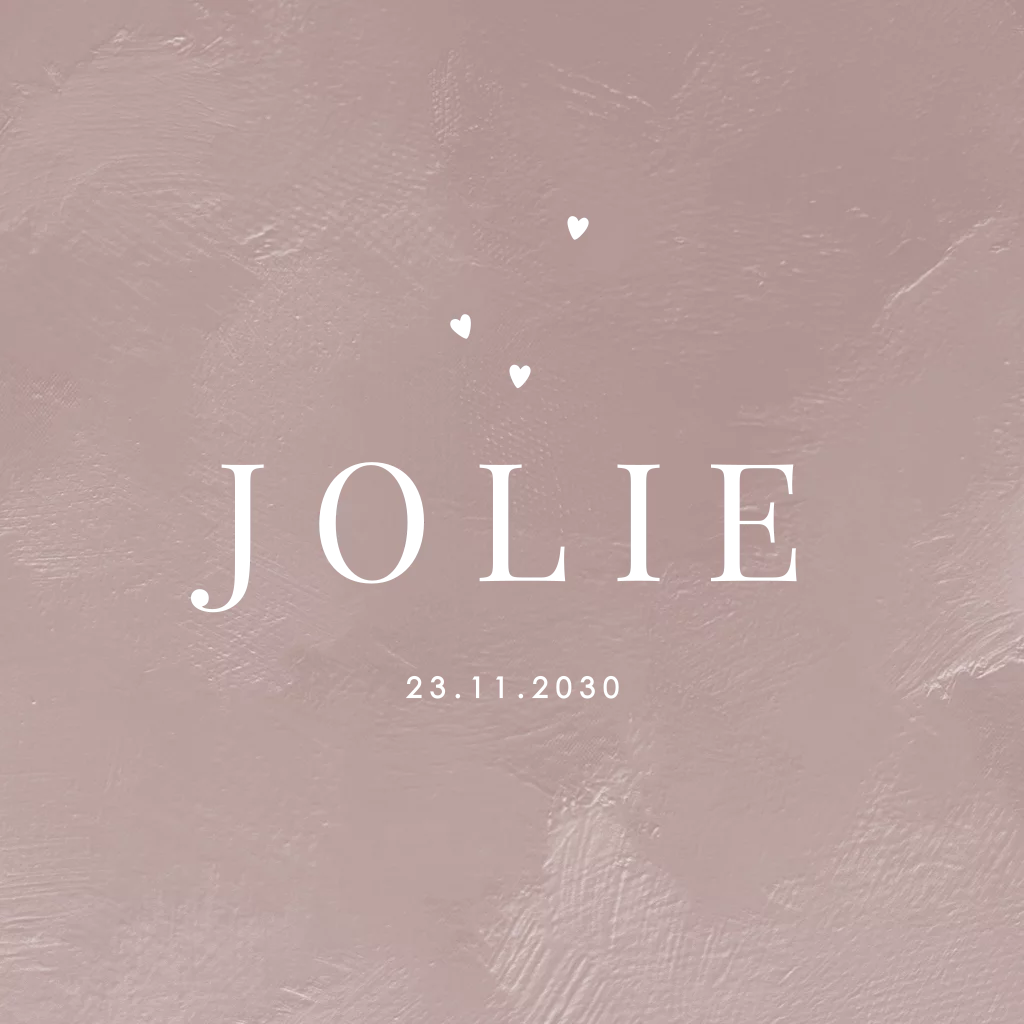 Dit luxe geboortekaartje voor een meisje is perfect voor ouders die op zoek zijn naar een minimalistisch en chique ontwerp. Met taupe en oudroze verfstructuur kleuren, samen met de naam in luxe rosé goudfolie straalt dit geboortekaartje elegantie uit.