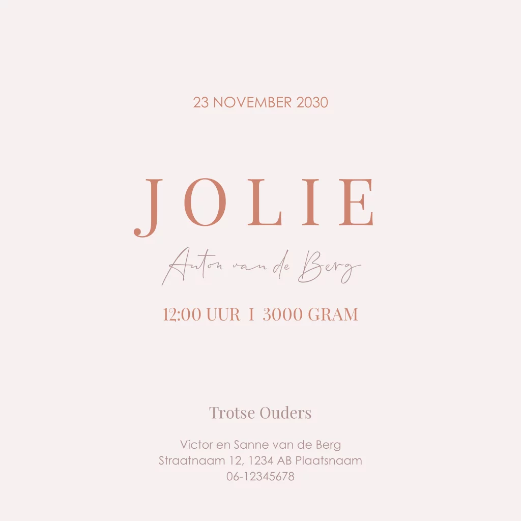 Laat iedereen weten dat jullie kleintje is geboren met dit prachtige geboortekaartje.