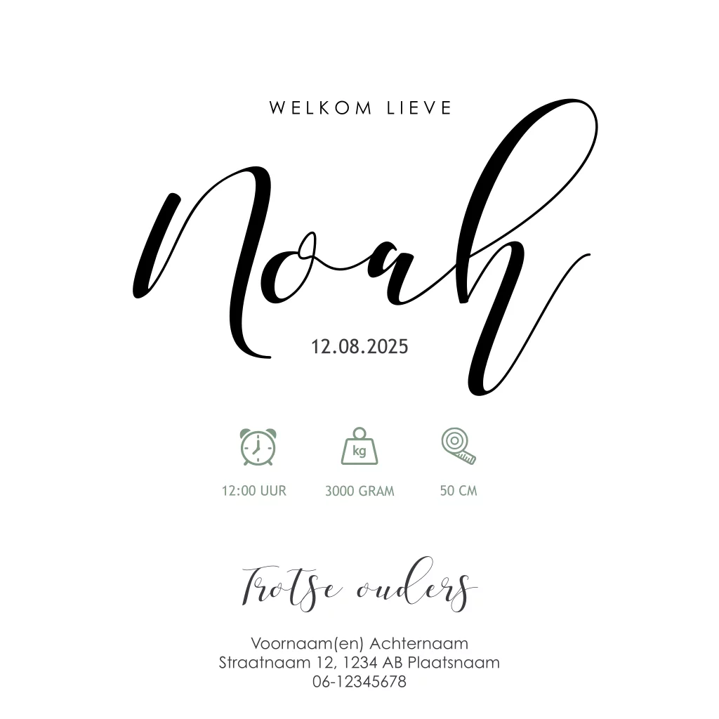 Wil je andere kleuren of goudfolie? Probeer het uit! Alles op dit geboortekaartje is aan te passen naar eigen smaak. Maak de stoerste geboortekaartjes zelf bij Luckz.