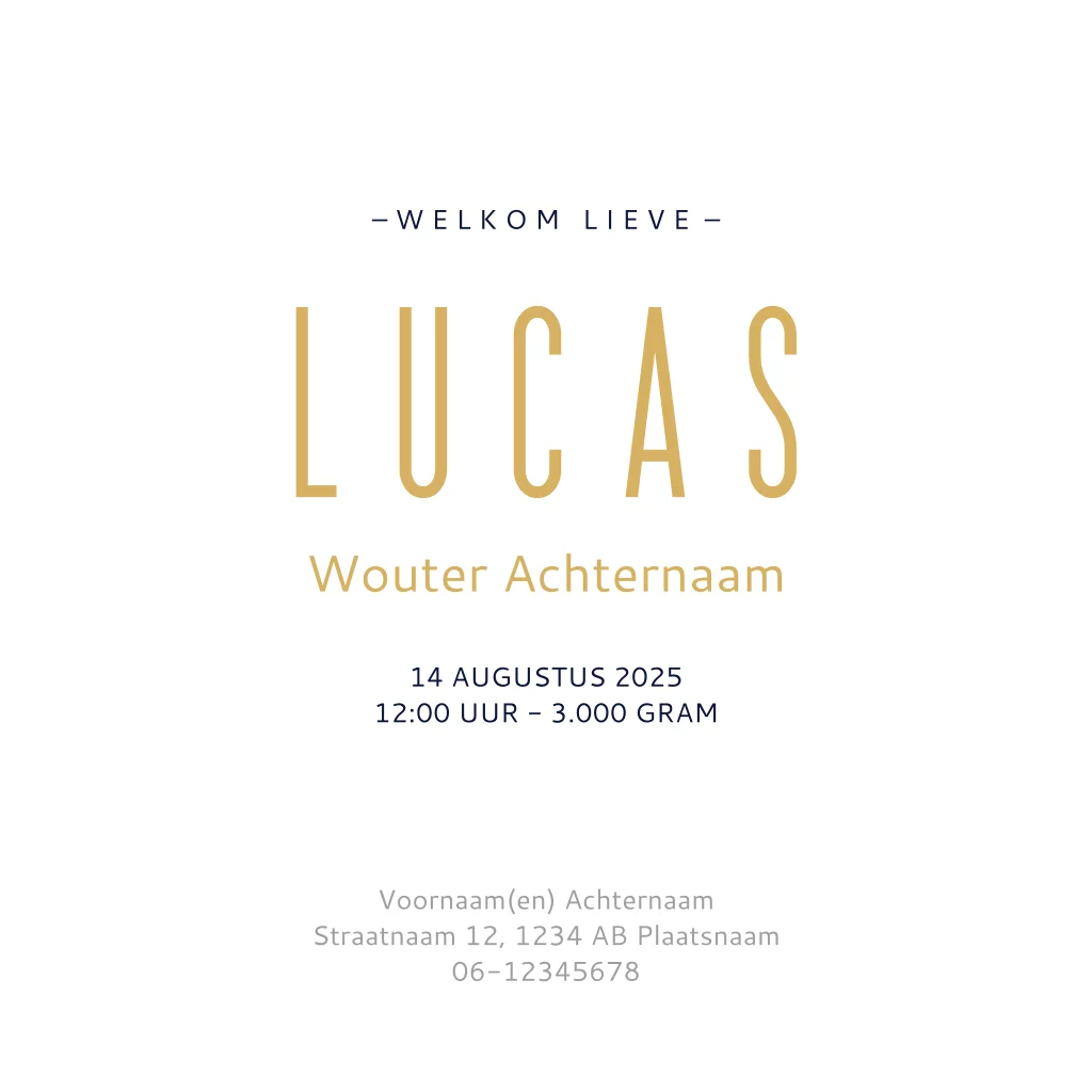 Maak zelf luxe en stoere geboortekaartjes voor een jongen bij Luckz. Met of zonder goudfolie.