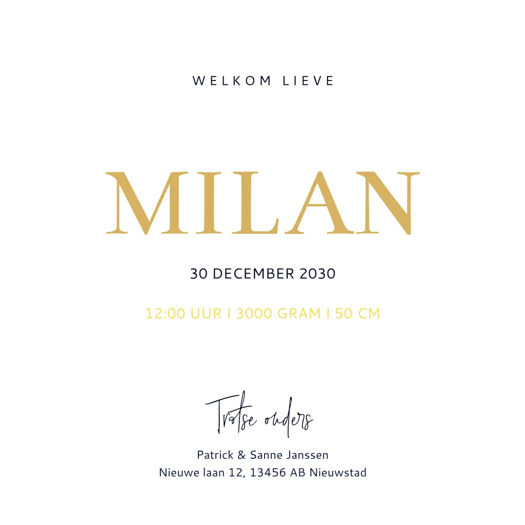 Verwelkom jouw kleine Steenbok met dit prachtige geboortekaartje! Een hemels donkerblauwe achtergrond vol kleine sterretjes en mooie goudfolie. Perfect geboortekaartje voor een jongen.