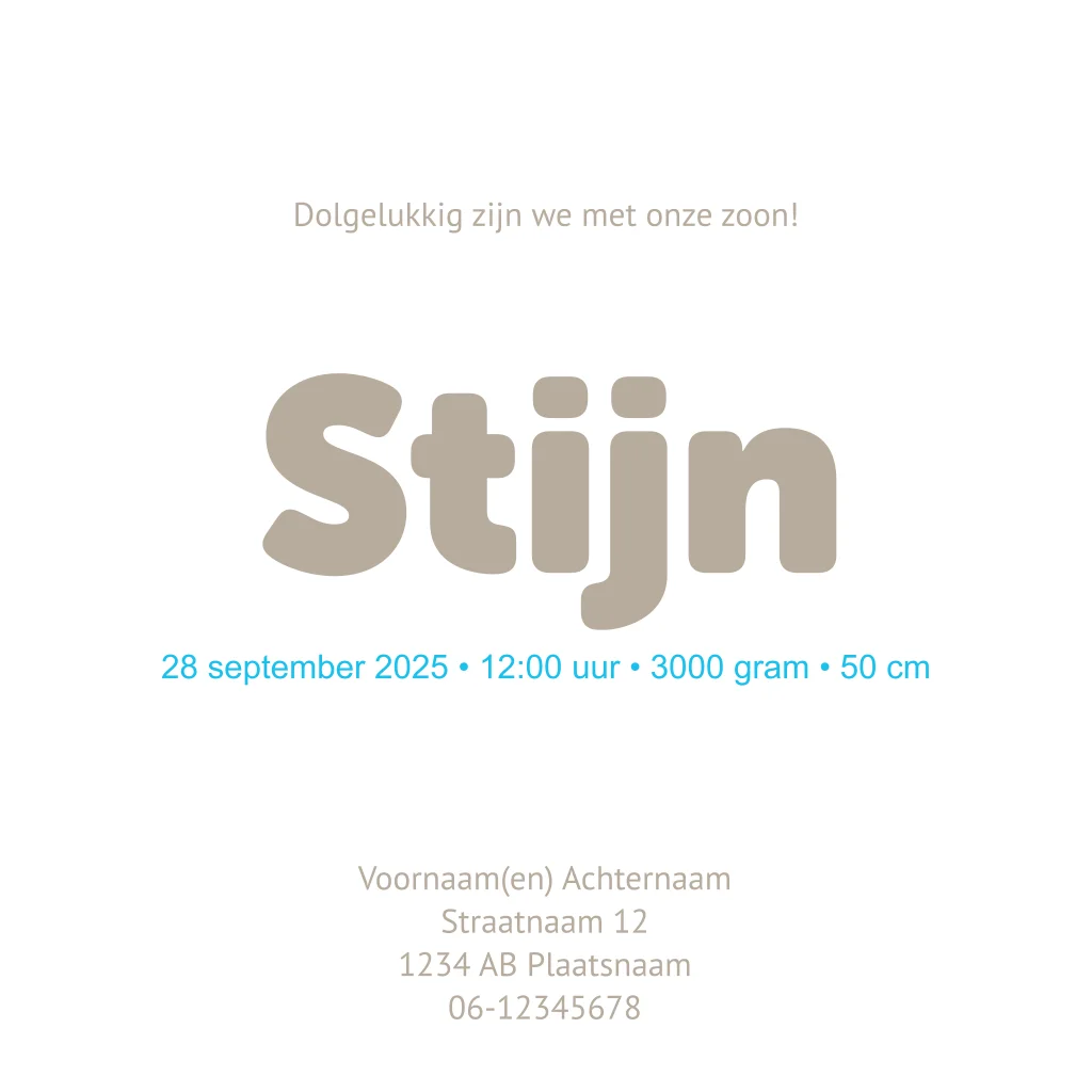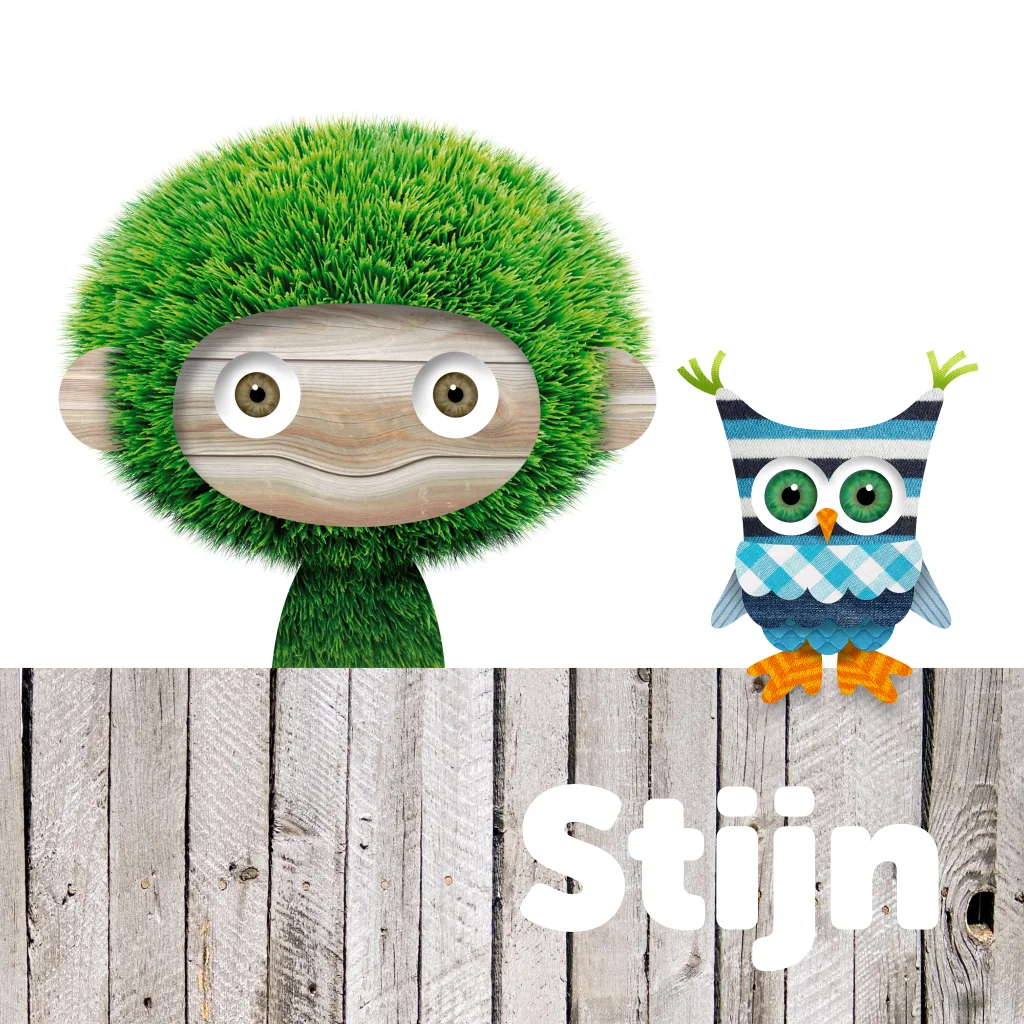 Een grappig en lief geboortekaartje met aap voor jouw zoon. Een schattig groen aapje kijkend over een grijze steigerhouten schutting. Naast hem een vrolijk blauw uiltje en plaats voor de naam van je nieuwe oogappel. Aan de binnenkant van de geboortekaart is er plaats voor een tekst of een gedichtje. Alles is makkelijk aanpasbaar.