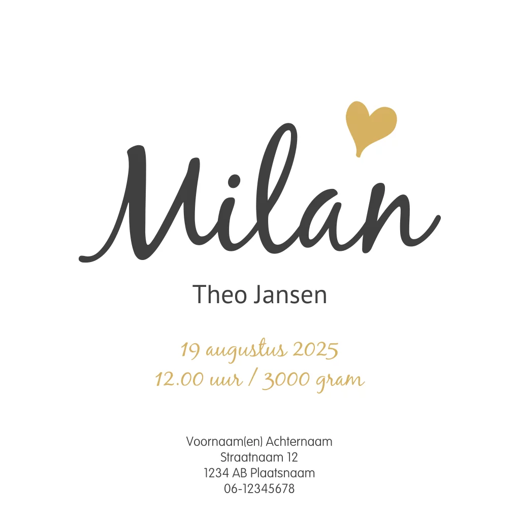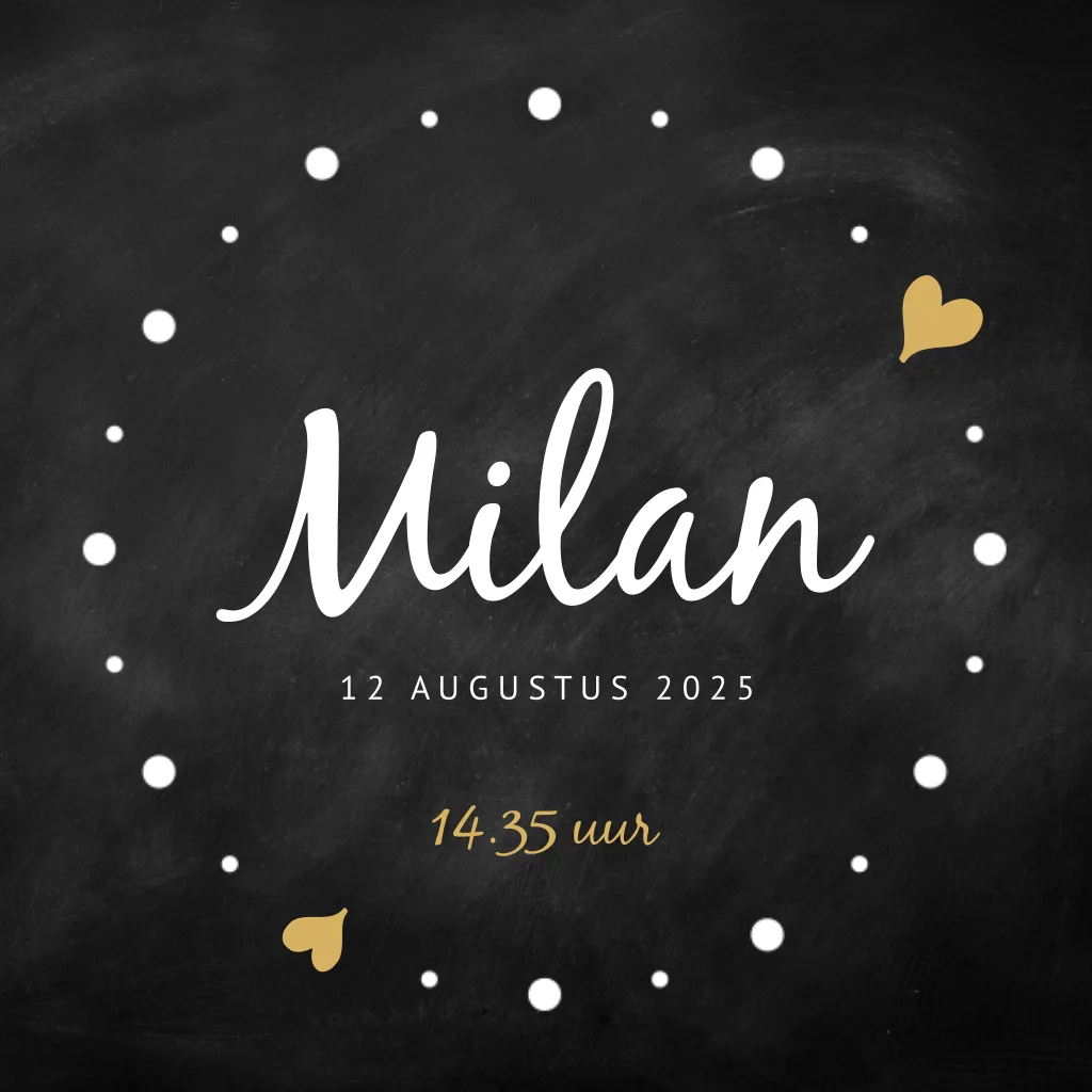Ontwerp dit geboortekaartje zelf en verplaats en roteer de hartjes naar het tijdstip waarop jullie kleine jongen is geboren.