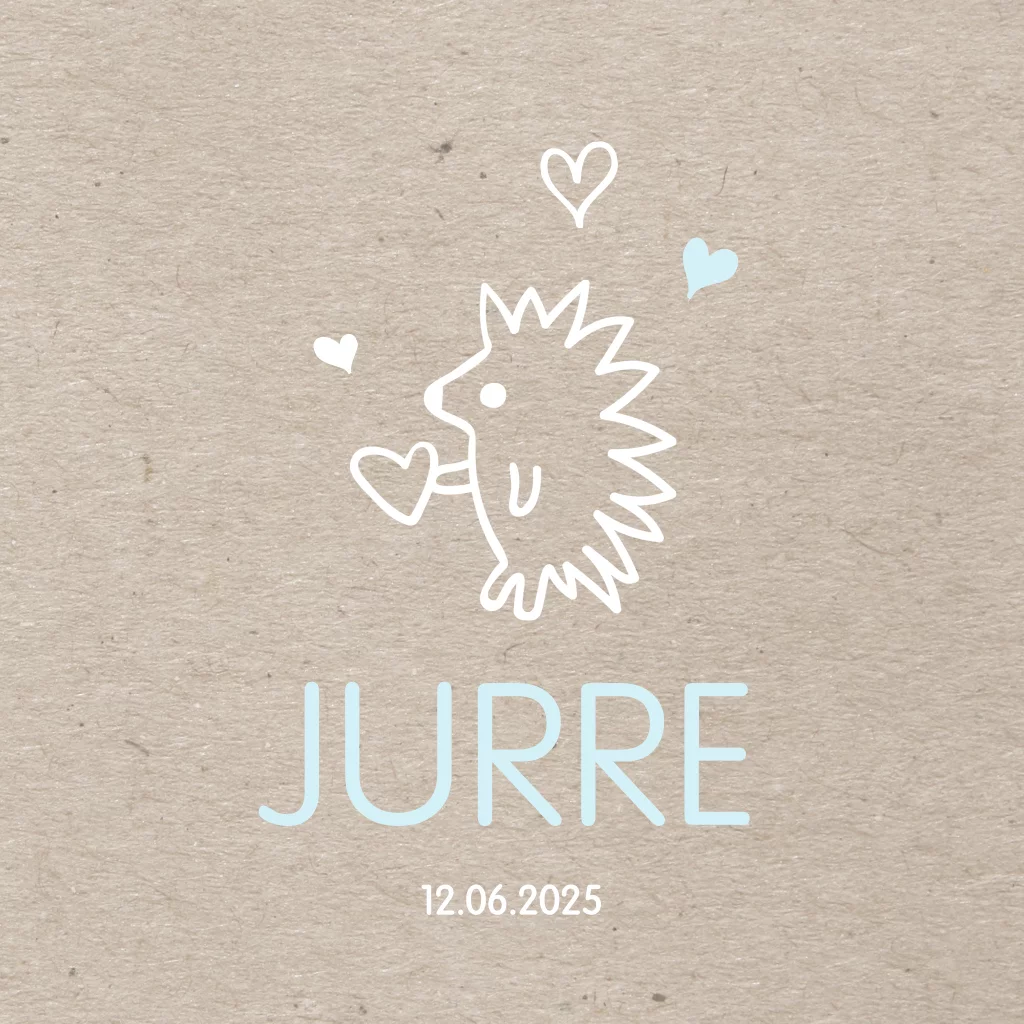 Laat met een trendy geboortekaartje aan familie en vrienden weten dat jullie kleine man geboren is. Stoer kraft papier design met zachte blauwe tinten en een heel lief klein egeltje. Pas dit geboortekaartje aan naar eigen smaak met de editor.