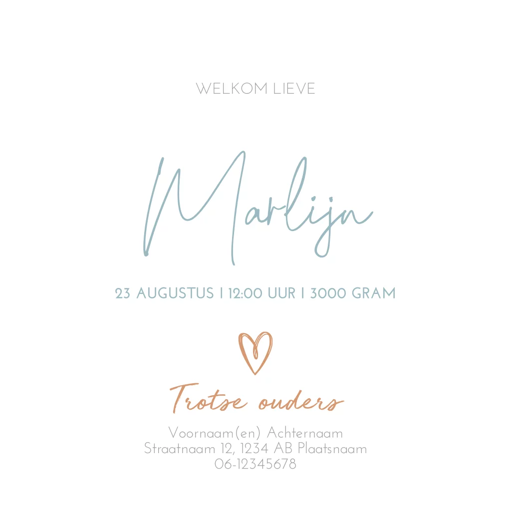 Geboortekaartje grijs blauw jongen met hart goudfolie