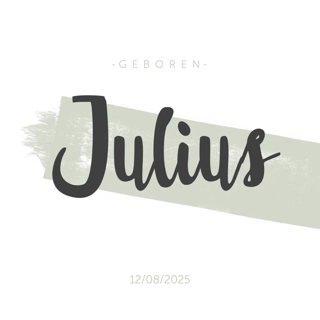 Het geboortekaartje heeft nog meer mooie groene verf elementen en teksten in de binnenkant.