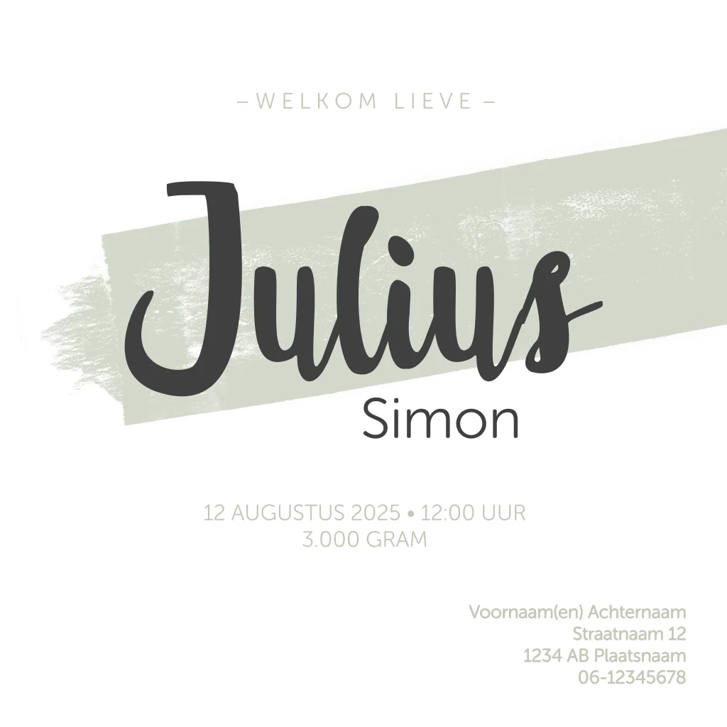 Geboortekaartje jongen waterverf veeg