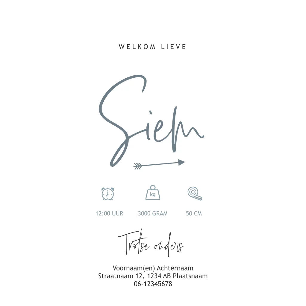Pas zelf de babynamen, kleuren en teksten aan. Alles op dit geboortekaartje kun je naar smaak personaliseren bij Luckz.