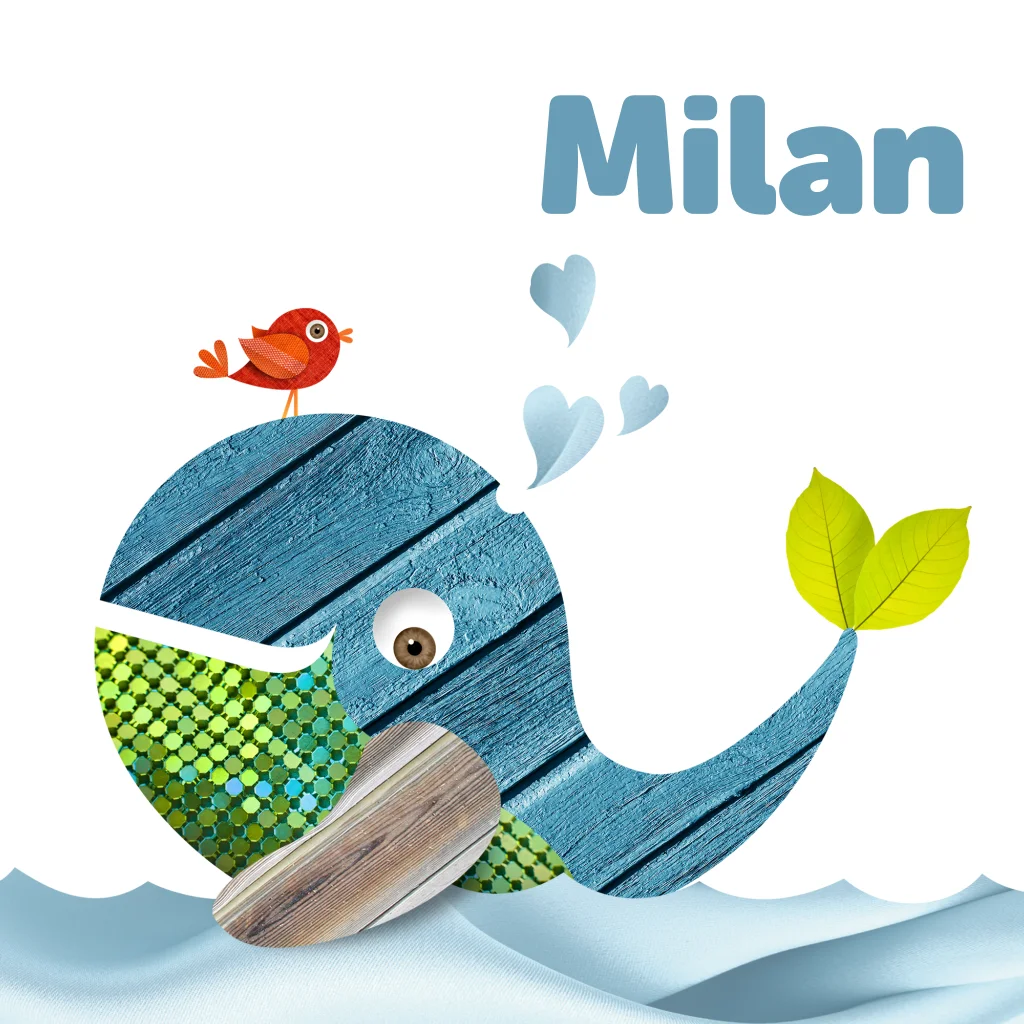 Geboortekaartje - Blauwe walvis met rood vogeltje