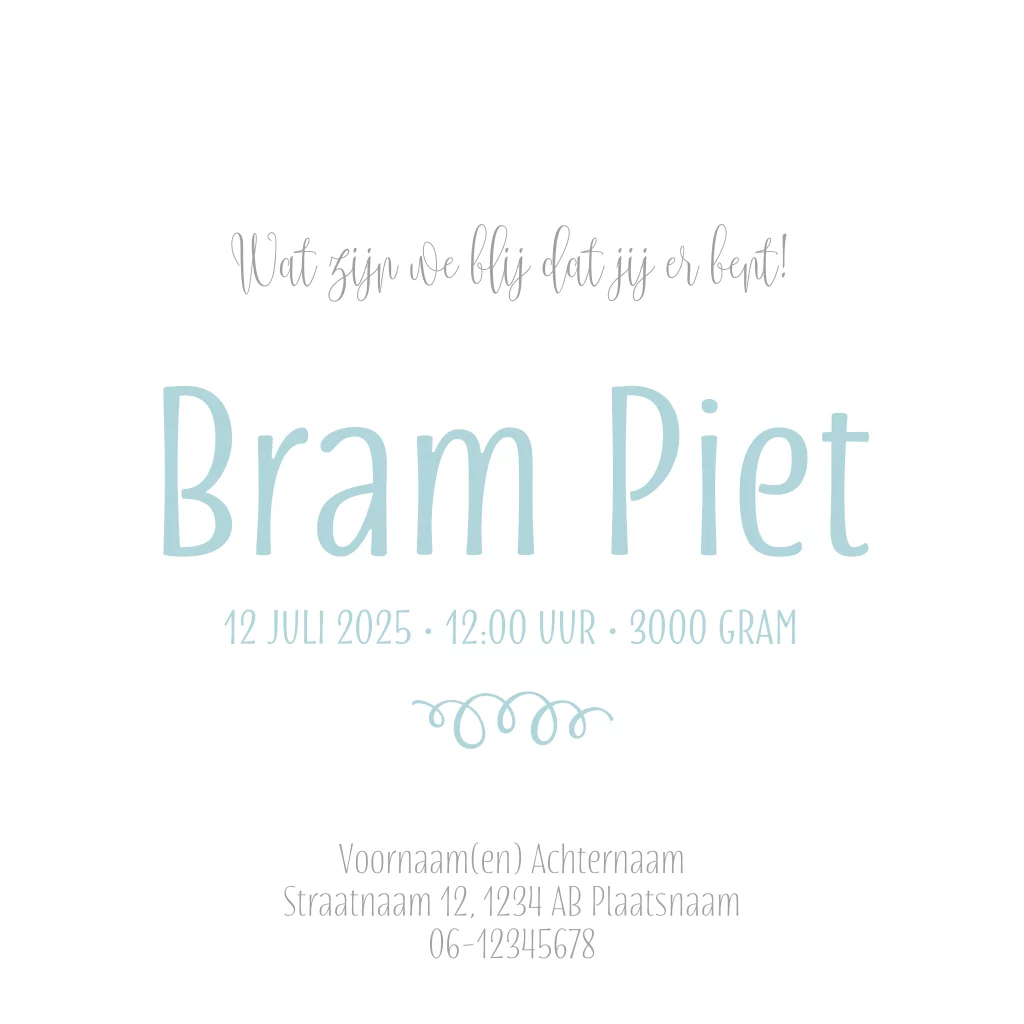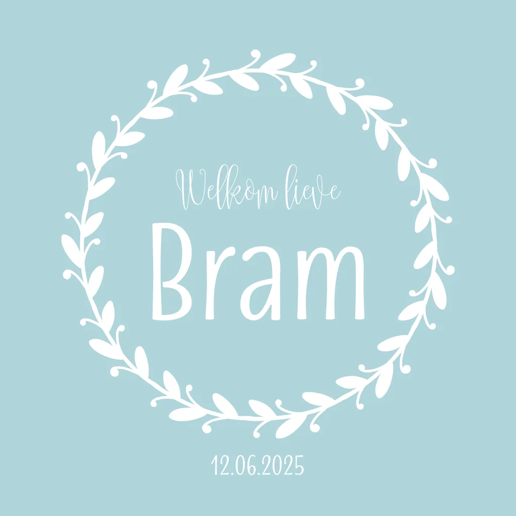 Nodig familie en vrienden uit als de kleine er is met een zelf ontworpen lief en stijlvol geboortekaartje. Een mooie frisse blauwe kleur aan voor en achterzijde, een sierlijke witte cirkel krans waar jullie de naam van de baby in kunnen plaatsen. De kleurrijke combinatie van wit en blauw maken dit geboortekaartje sfeervol en exclusief.