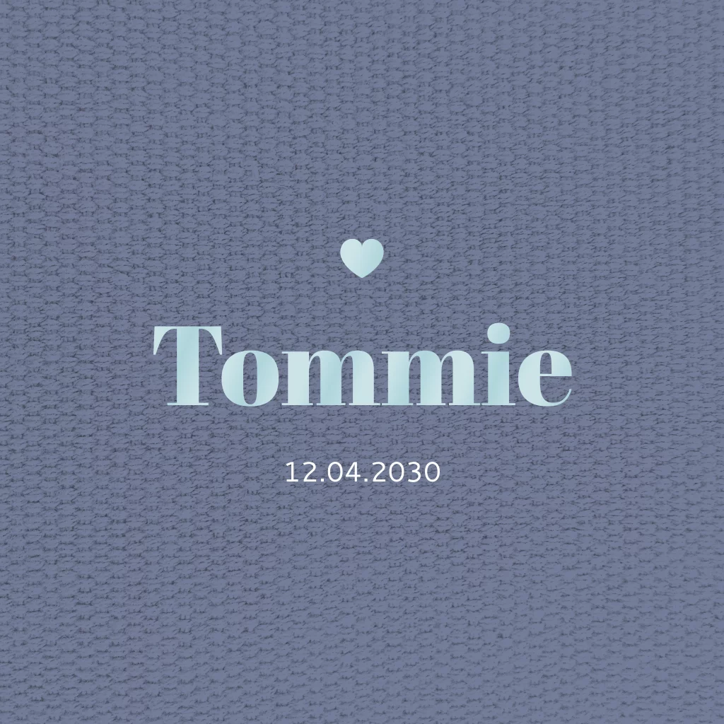 Ontdek onze prachtige geboortekaartjes voor jongens! Een basic, maar toch stijlvol ontwerp met een mooie blauwe kleur en een subtiele stoftextuur. De naam op de voorkant schittert in hoogglans. Bestel nu een proefdruk en ervaar zelf hoe op dit minimalistische geboortekaartje de naam van jullie kleintje groots en prachtig zal stralen. Alles kun je geheel personaliseren.