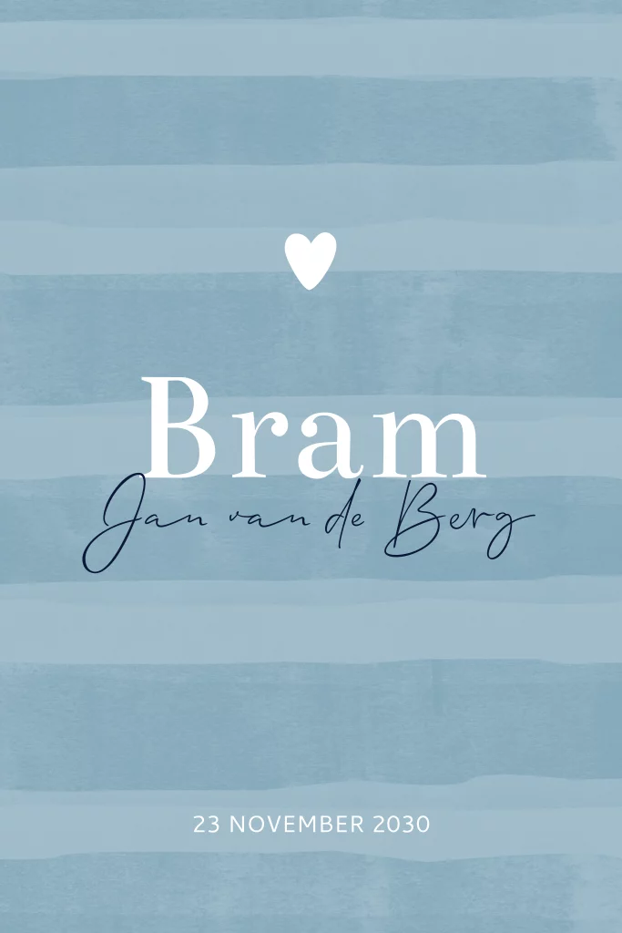 Maak de geboorte van je kleine zoontje extra speciaal met dit vrolijke geboortekaartje! Met zijn prachtige waterverf strepen in blauwe tinten en unieke ronde hoeken, is deze geboortekaart een echte eyecatcher.
