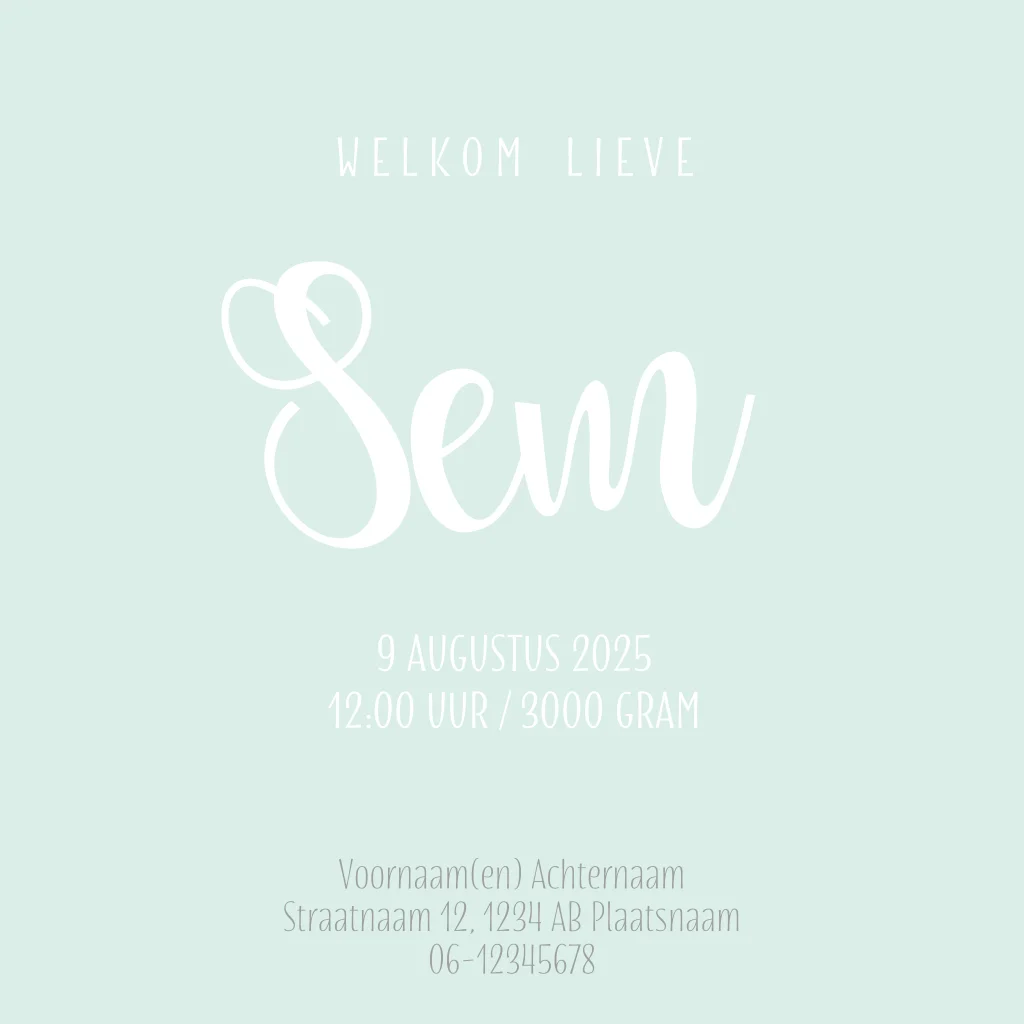 Schrijf een lief geboortegedichtje en zet deze in de aquarel stijl wolk. Maak deze lieve en unieke geboortekaartjes voor deze prachtige gebeurtenis in jullie leven!