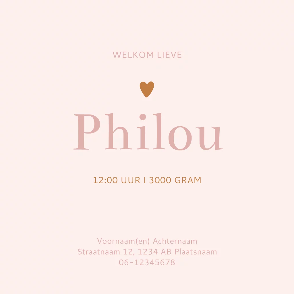 Minimalistisch geboortekaartje voor een meisje met zachte roze waterverf strepen en een schattig hartje. Dit eenvoudige ontwerp straalt zachtheid en verfijning uit, perfect passend voor jullie aankondiging. De combinatie van roze tinten en het subtiele hartje maakt dit geboortekaartje een prachtige keuze om de komst van jullie dochtertje te vieren.