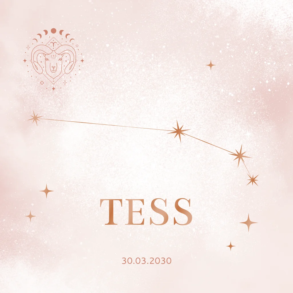 Geboortekaart sterrenbeeld Ram meisje hoogglans