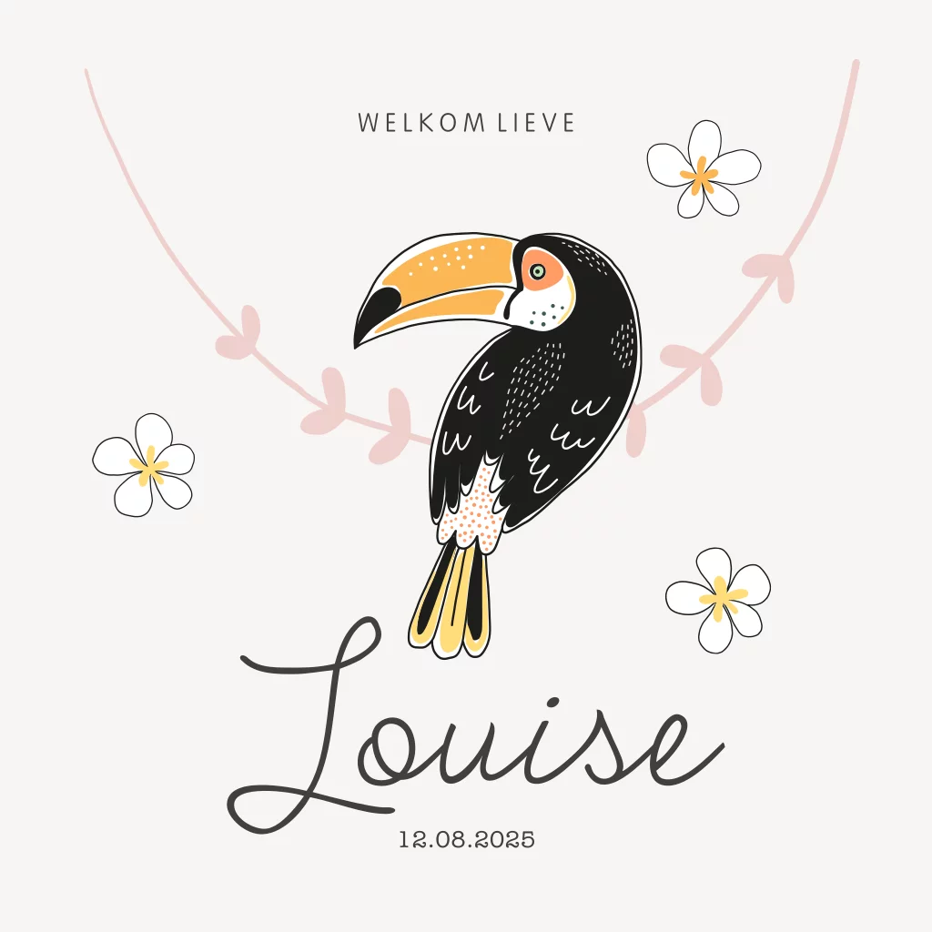 Geboortekaartje jungle vogel toekan meisje