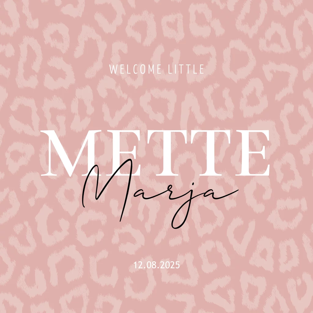 Maak zelf dit hippe geboortekaartje met dieren panterprint voor een meisje bij Luckz! Met hippe lichte en oud roze kleuren die je ook zelf helemaal kan wijzigen in welke kleur je maar wil.