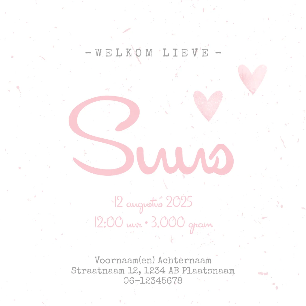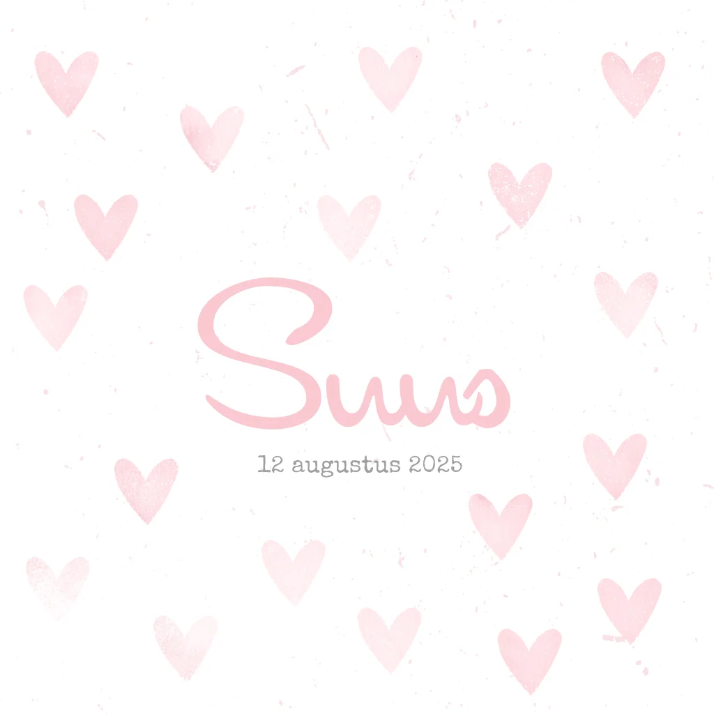 Geboortekaartje roze stempel hartjes