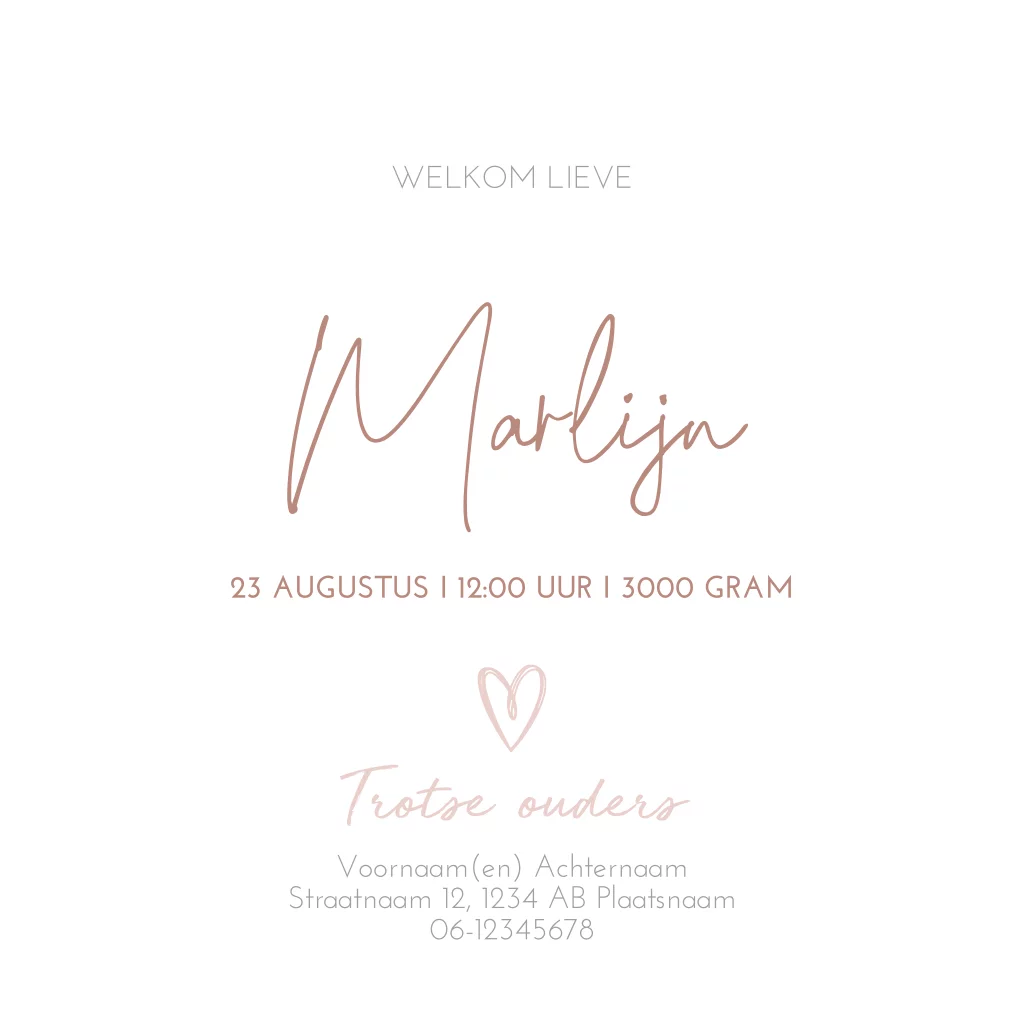 Geboortekaartje taupe roest bruin meisje met hart rosé folie