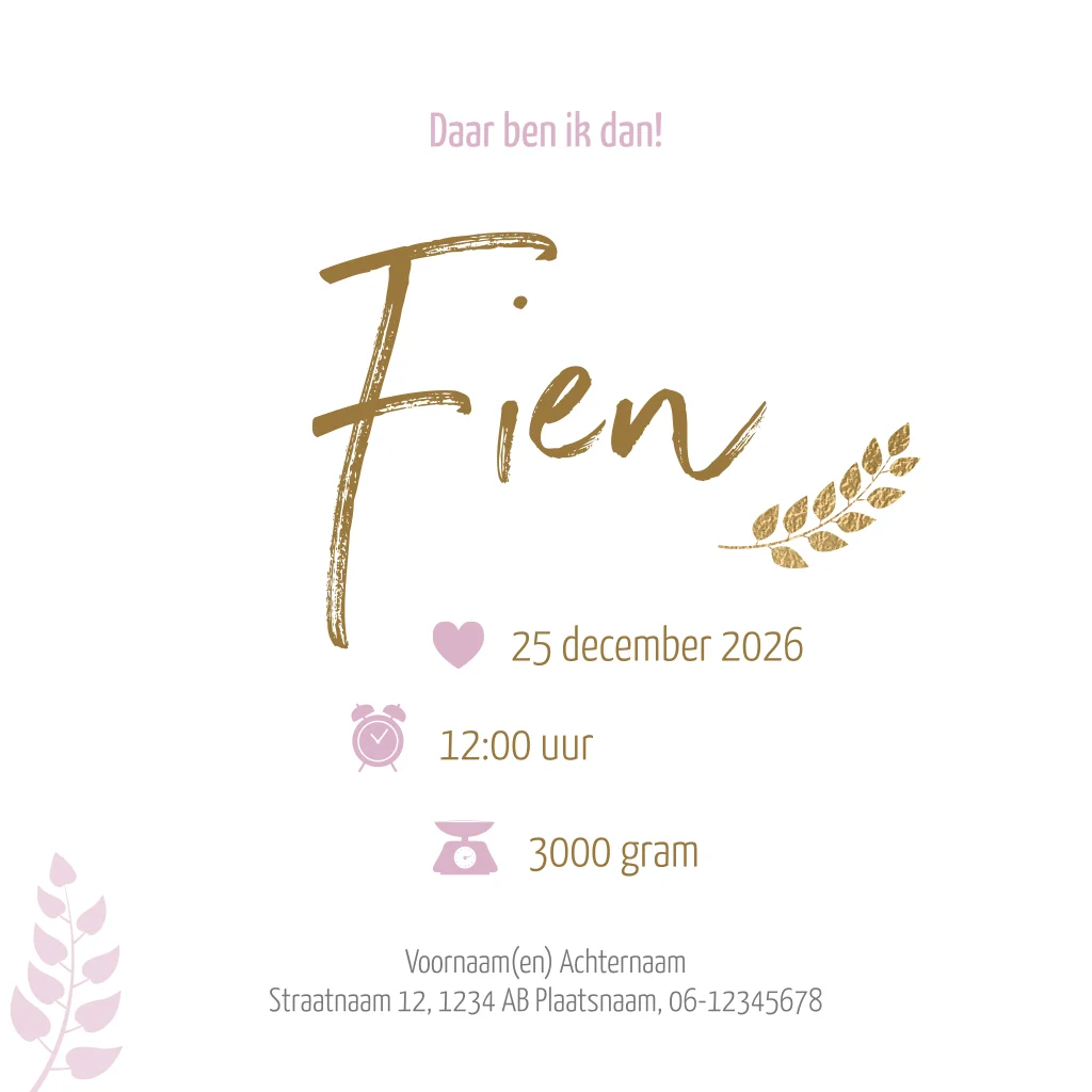 Lieve geboortekaartjes voor een meisje van Luckz. Wordt je kleine dochter in de herfst of winter geboren? Ontwerp dit mooie geboortekaartje met een leuk silhouet van een spelend meisje. Met witte en roze aquarel herfst en winter look tafereel. En rondom vallende bladeren en takjes.