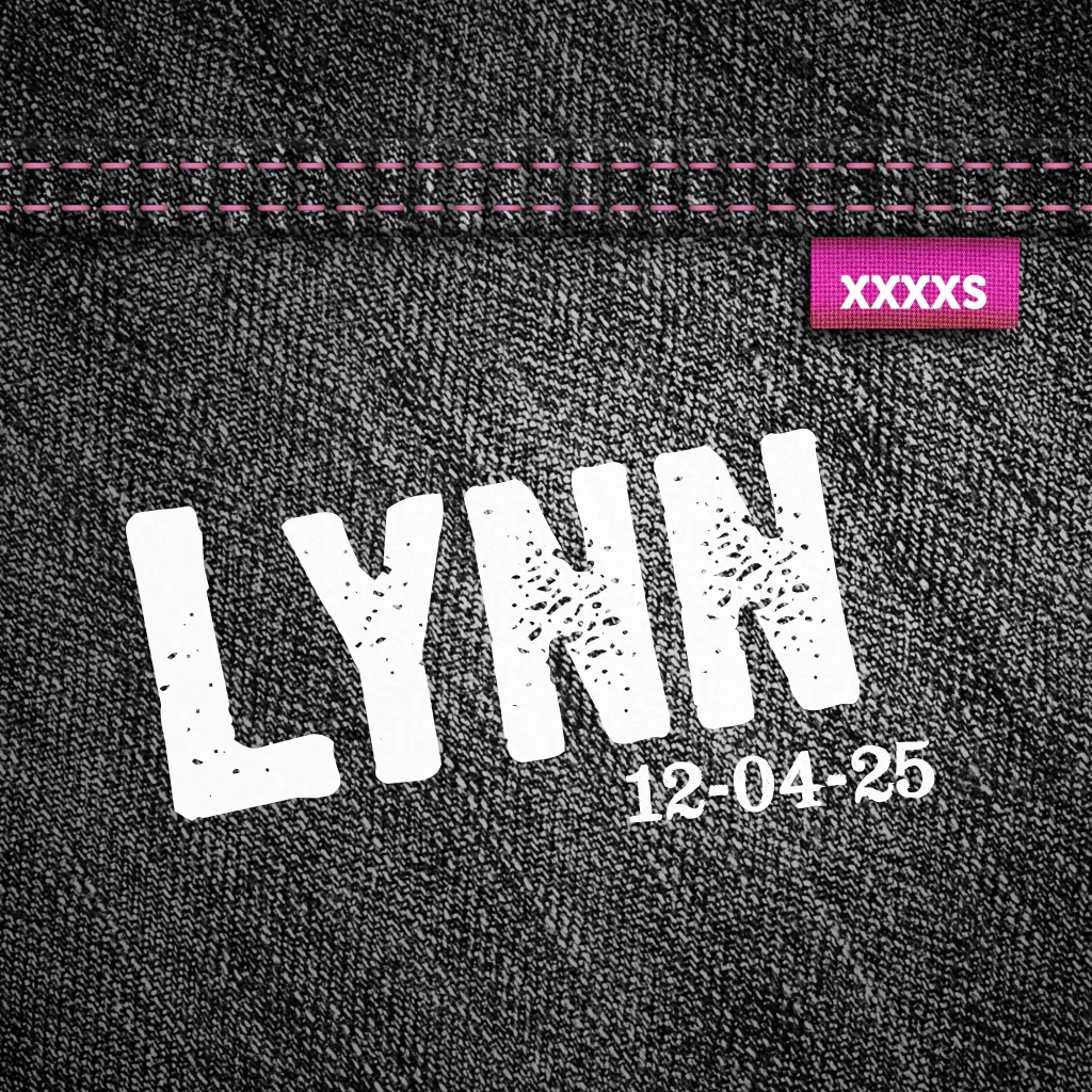 Een stoer en hip geboortekaartje van zwart spijkerbroek jeans stofje voor een meisje met een grappig xxxxs labeltje. Kies een van de hippe geboortekaartjes bij Luckz.
