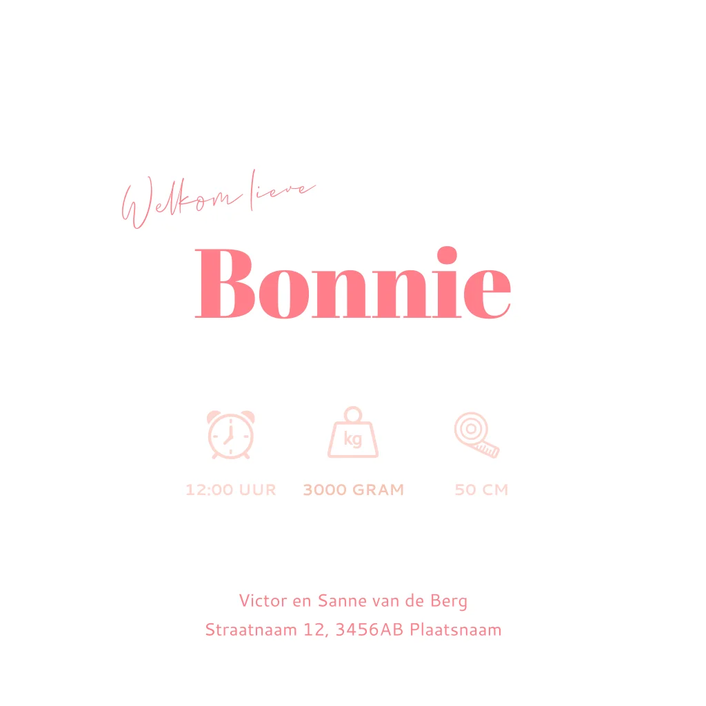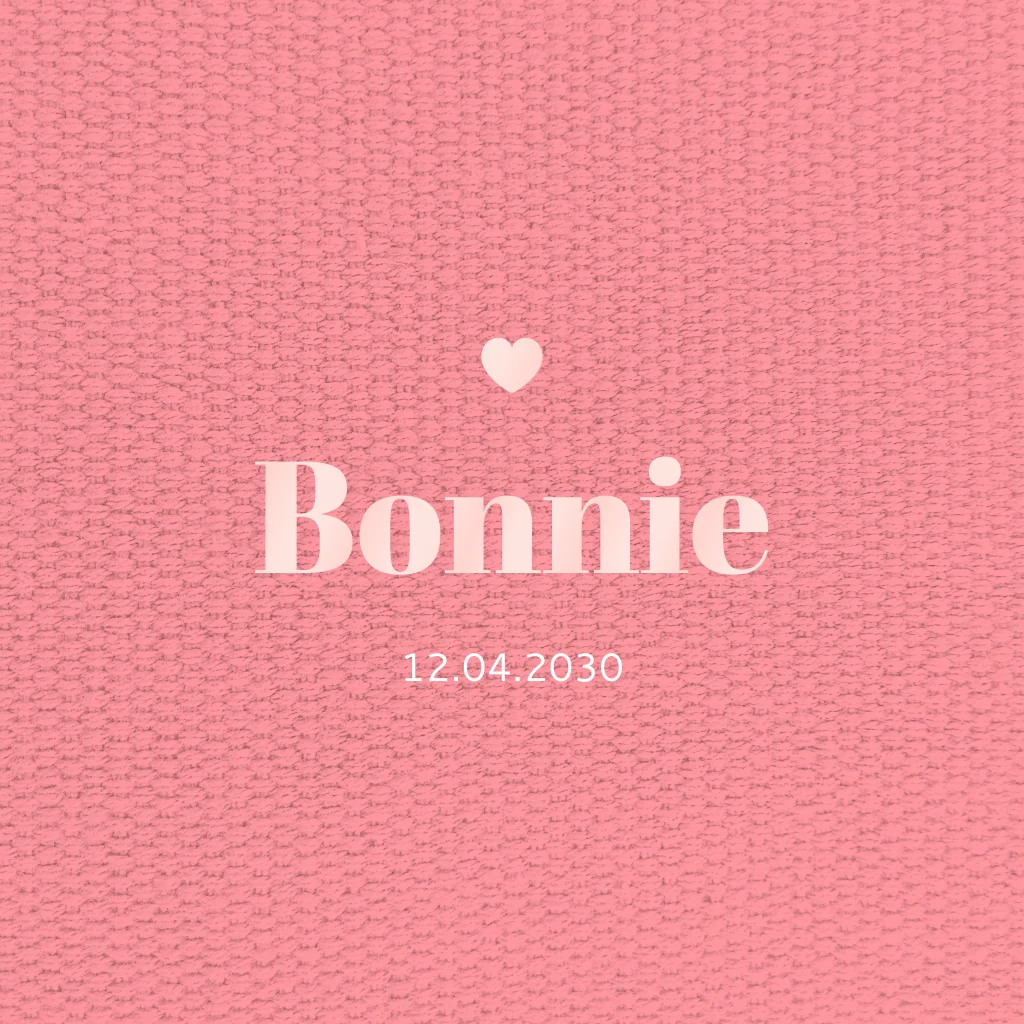 Bekijk dit prachtige minimalistische geboortekaartje voor meisjes! Met een hippe roze tinten en een stijlvolle stoftextuur op de ondergrond, straalt dit kaartje eenvoud en elegantie uit. De geboorte naam op de voorkant schittert in hoogglans, waardoor het geheel een extra luxe uitstraling krijgt. Bestel vandaag nog een proefdruk en bewonder zelf dit unieke effect met de naam van je kleintje groots op de voorkant.