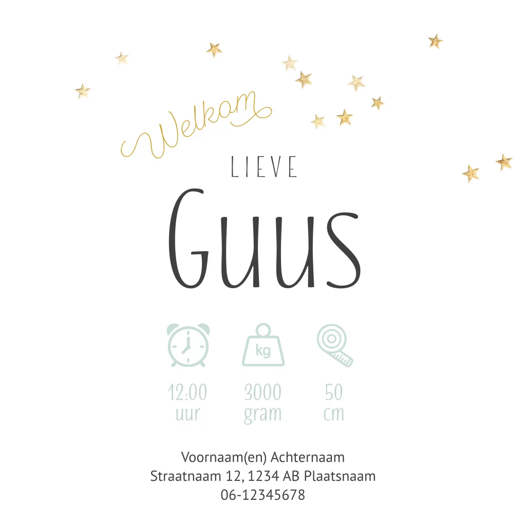 Lief geboortekaartje met een ooievaar voor een jongen of meisje. Schattige dieren geboortekaartjes van Luckz.