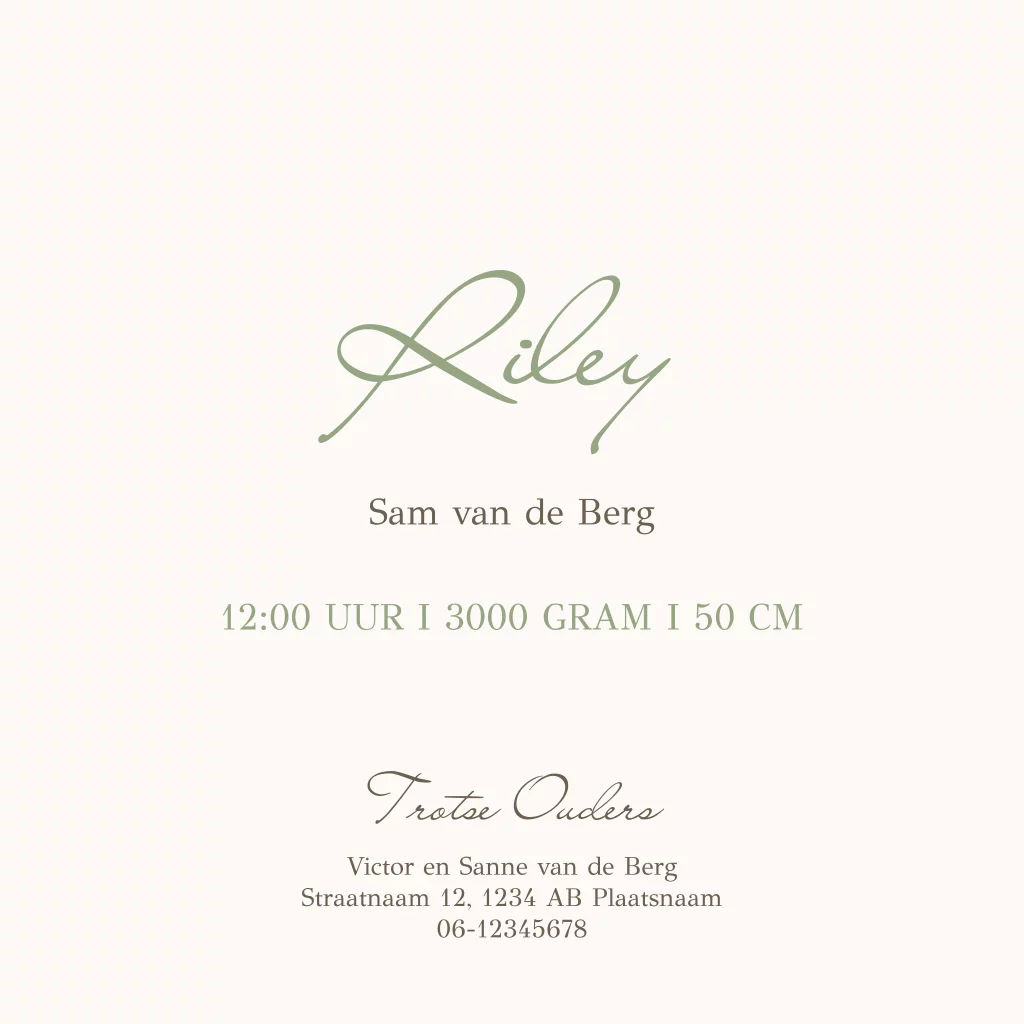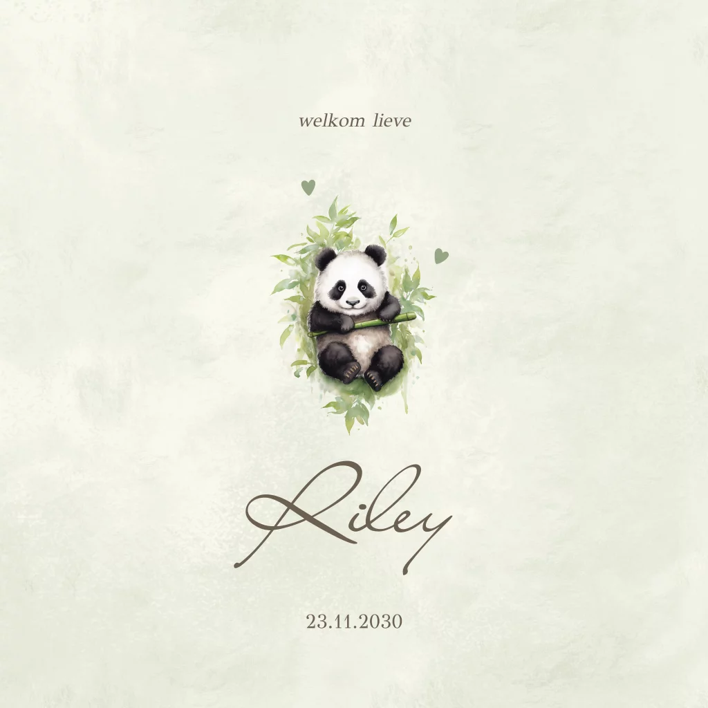 Dit lieve geboortekaartje voor jongens is perfect te personaliseren met een schattig panda beertje op een groen met ecru achtergrond, perfect voor een jongetje of een meisje. Voeg de naam van je kleintje toe en maak het geboortekaartje helemaal uniek!