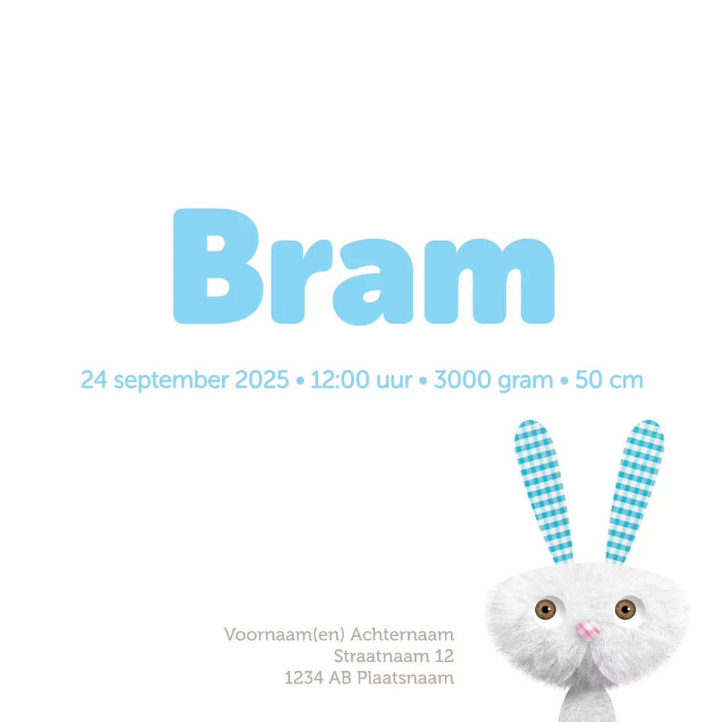 Het is zover de tweeling is geboren gefeliciteerd! Nodig met deze schattige kaart familie en kennissen uit om een bezoekje te brengen aan mamma en de twee kleintjes. Twee lieve konijntjes die boven een schutting uitkijken, met mooie roze en blauwe oren. Plaats de twee namen aan de binnenzijde van de geboortekaart en nodig met een leuke tekst iedereen uit om de twee kindjes te bekijken.