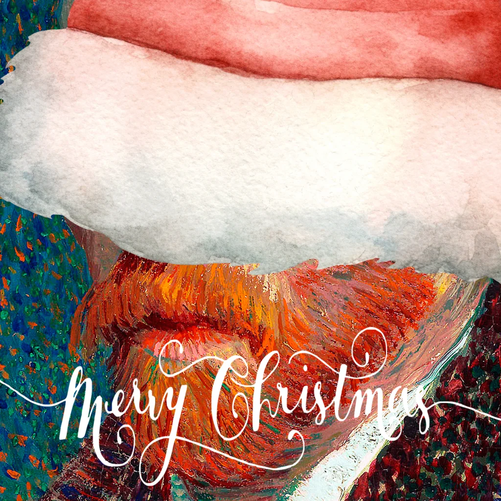 Grappige kerstkaart met van Gogh met kerstmuts