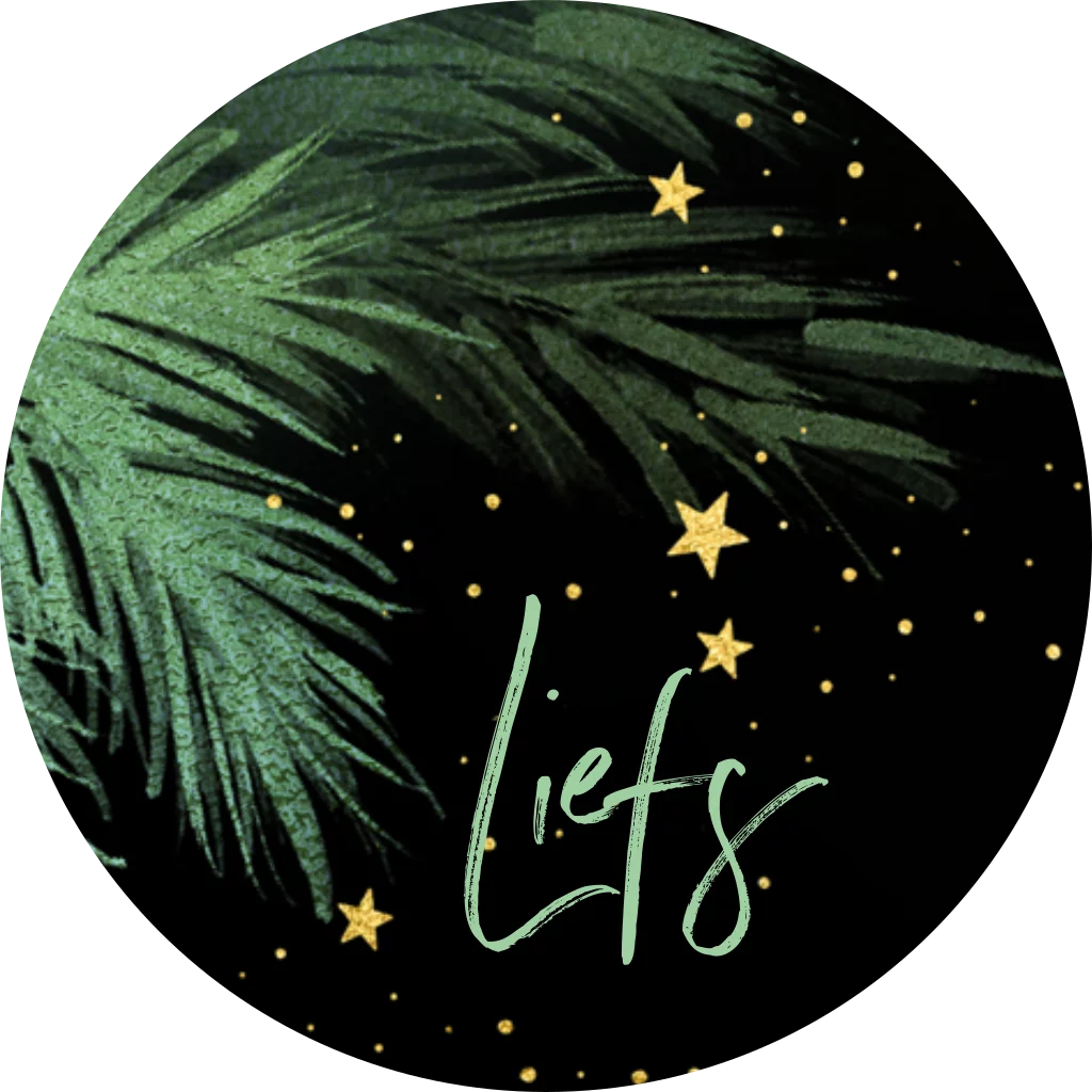 Mooie kerststickers voor op de enveloppen van je kerstkaarten. Met mooie groene kerstboom dennentakken en een zwarte sterrennacht met kleine gele sterretjes. Deze sticker kun je zelf personaliseren met een woord, naam of tekst. - De sticker heeft een diameter van 35 mm. - 25 stuks per vel