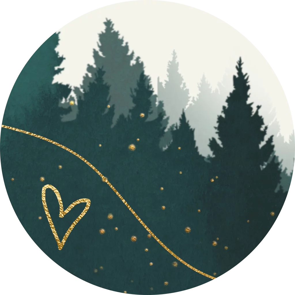 Mooie sluitzegel stickers voor op de enveloppen van je kerstkaarten met mooie groene waterverf kerstbomen en een klein mooi hartje en goud look versiering. - De sluitzegel heeft een diameter van 35 mm. - 25 stuks per vel