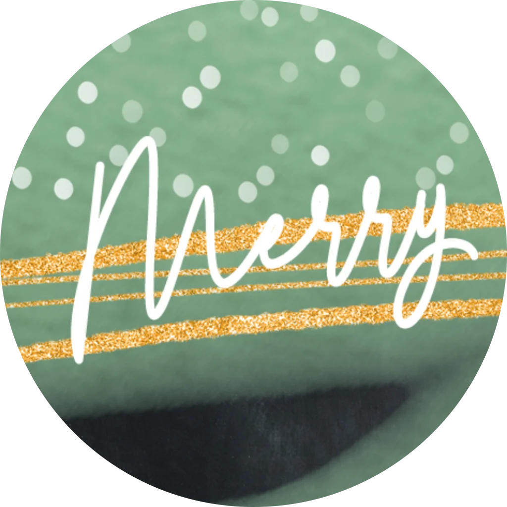 Mooie hippe sluitzegels voor kerstkaarten met groot het woord Mary, en groene en gouden restauratie. - De kerst sluitzegel heeft een diameter van 35 mm. - 25 stuks per stickervel