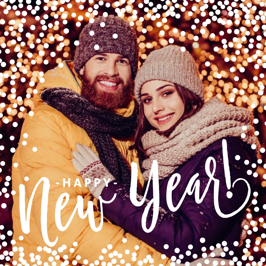 Met leuke typografische tekst "Happy New Year!" over de foto heen.