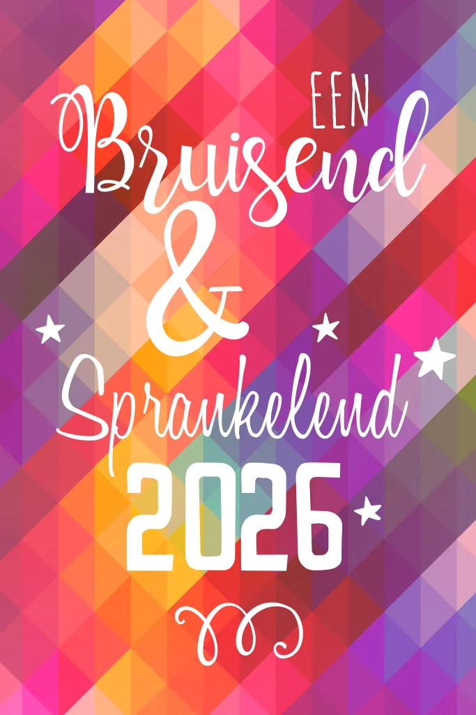 Een mooie typografische kerstwens "Een bruisend & sprankelend 2026" op de voorkant met luxe donkere kleur tinten.
