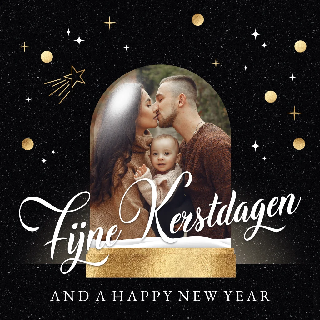 Kies een mooie foto die de warmte en gezelligheid van Kerstmis weergeeft. En upload je eigen foto met een klik op de knop in de sneeuwbol. Schrijf een persoonlijke kerstgroet in de binnenkant en bestellen maar!
