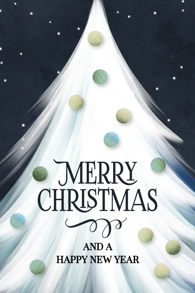 Een hippe kerstboom op je kerstkaart met zwart witte kleuren en feestelijke kerstballen. Pas de binnenkant naar wens aan en bestel je mooiste kerstkaarten bij Luckz.