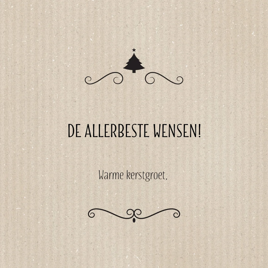 Als je de kaart openslaat zie je dat de binnenzijde van de kaart geheel van karton is met zowel links als rechts plaats voor een warme kerstgroet of zelfgeschreven kersttekst. De teksten zijn volledig aan te passen.