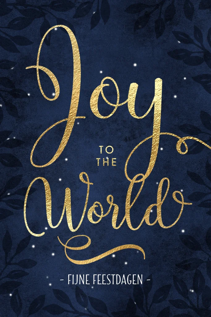 Kerstkaart Joy to the World goud typografie