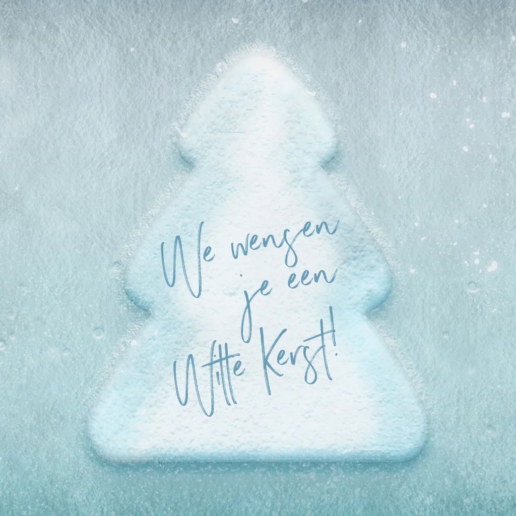 Hippe kerstkaart met een kerstboom silhouet in de sneeuw. Alles kun je zelf aanpassen op deze kerstkaart. Zo ook de tekst We wensen je een witte kerst en een schitterend Nieuwjaar! Voeg in de binnenkant een mooie kerstwens toe.