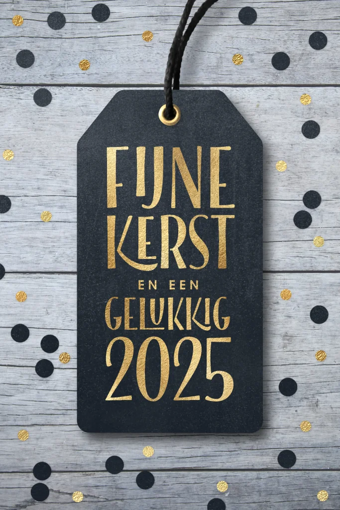 Kerstkaart met jaartal 2025 nieuwjaar label hout