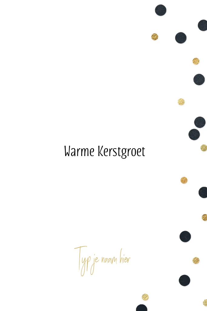 Hippe kerstkaart met groot krijtbord label, feestelijke stippen en gouden kerstwens met de tekst Fijne kerst en een gelukkig 2025.