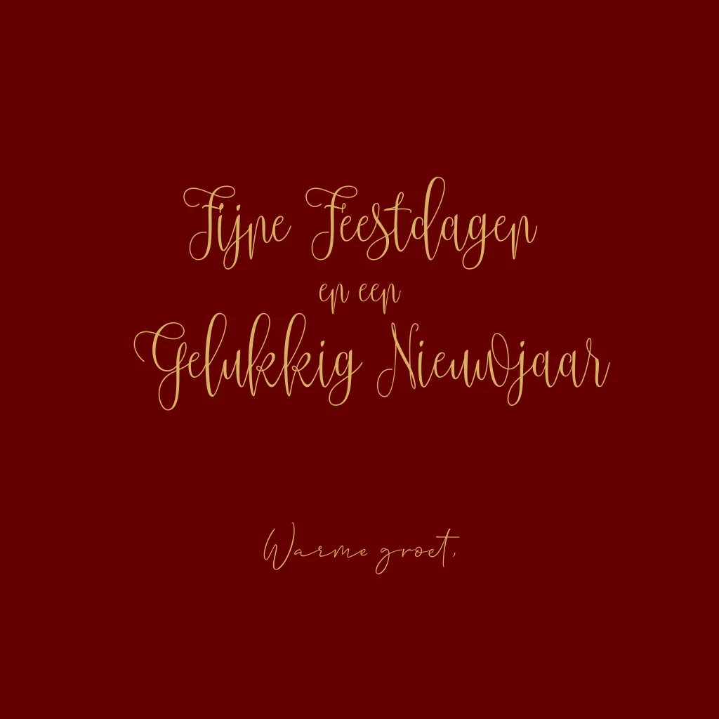 Leuke kerstkaart met een vrolijke illustratie van guitige sneeuwpop, met rondom dennentakken met kerstversiering, in de sneeuw.