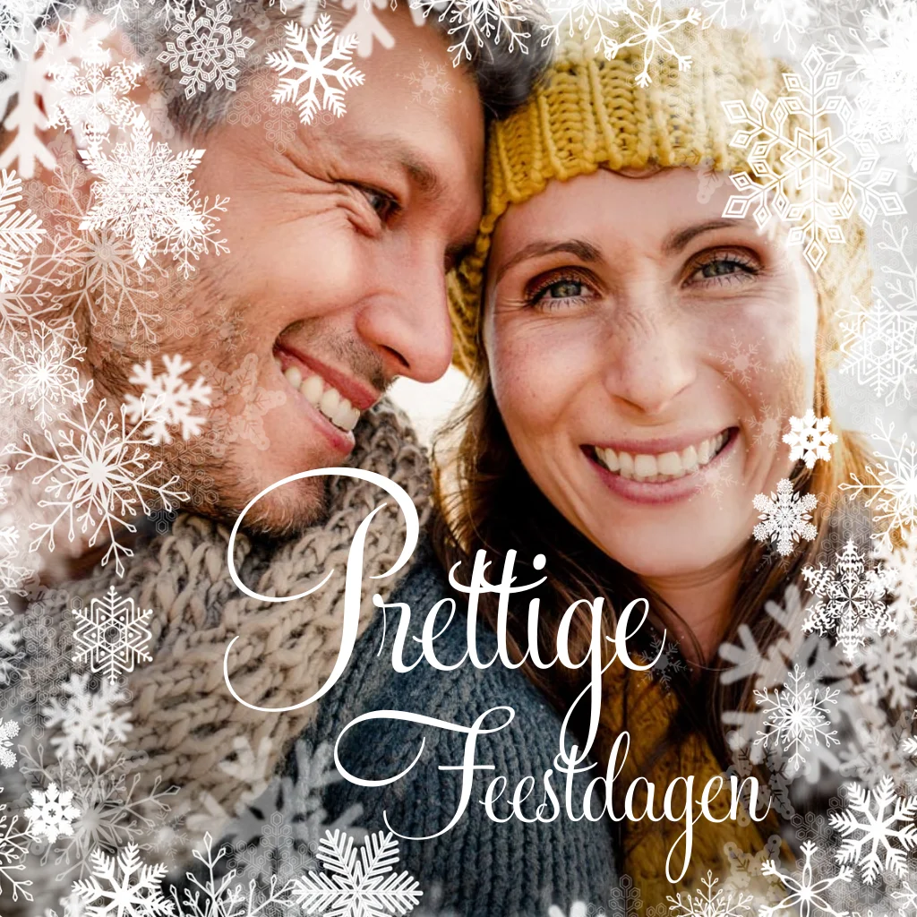 Zet je foto op de voorkant achter de mooie sneeuwvlok details en schrijf jullie namen in de binnenkant.