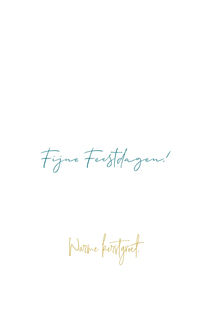 Er staan twee foto's op de voorkant en één foto in de binnenkant. Het groene kerst design is opgezet uit moderne driehoek kerstbomen en rondom kleine gouden sterretjes en sneeuw stippen.