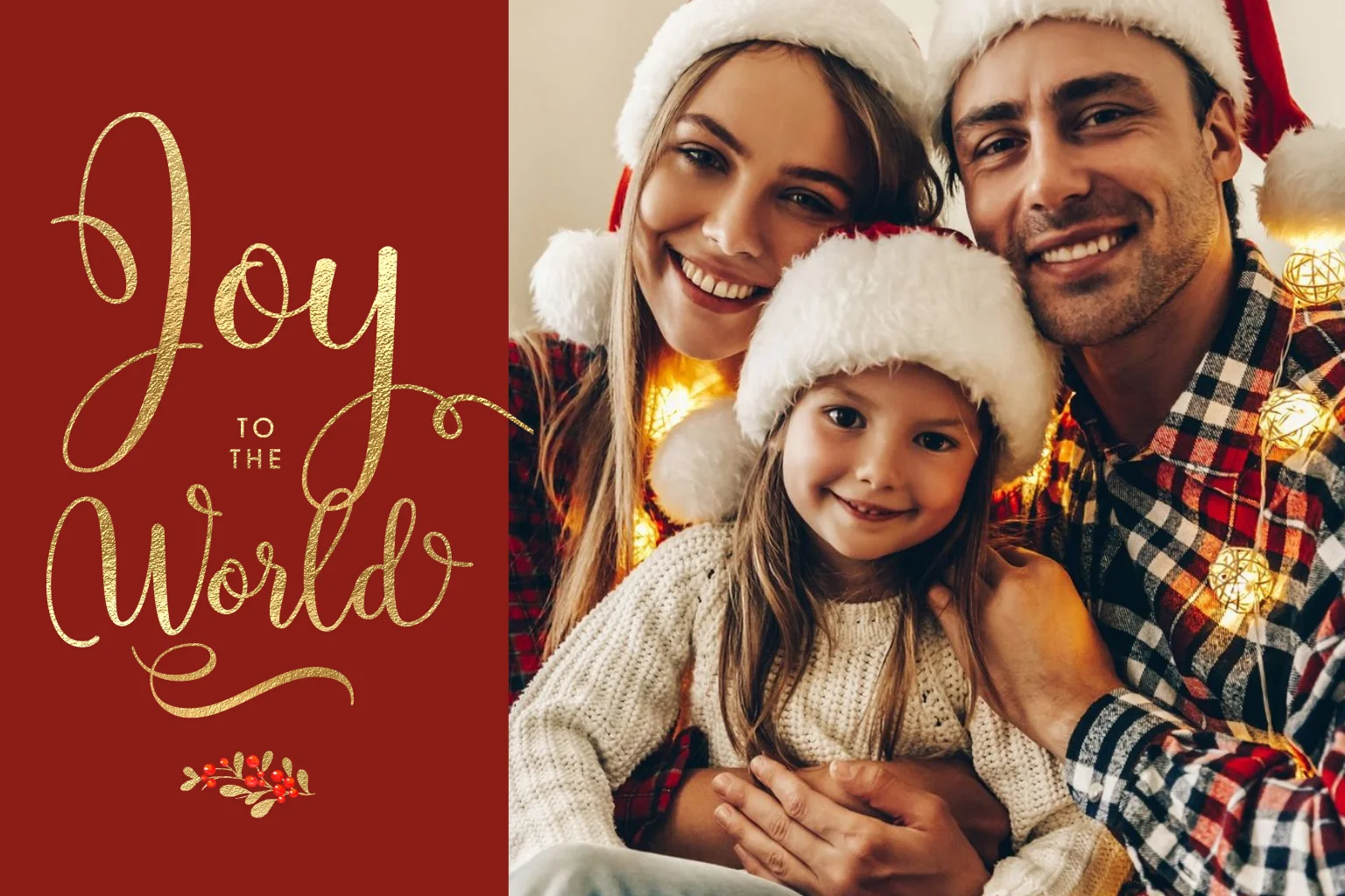Maak je eigen feestelijke rode kerstkaarten met je eigen familie foto op de voorkant. Pas zelf de kerstgroet, namen, foto en kleuren aan.