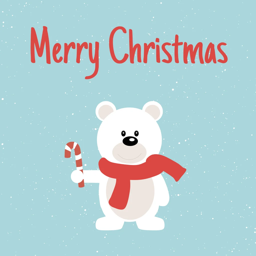 Ontwerp zelf dit lieve kerstkaartje met een vrolijke ijsbeer en pas de teksten en kleuren aan met de kaarten editor.